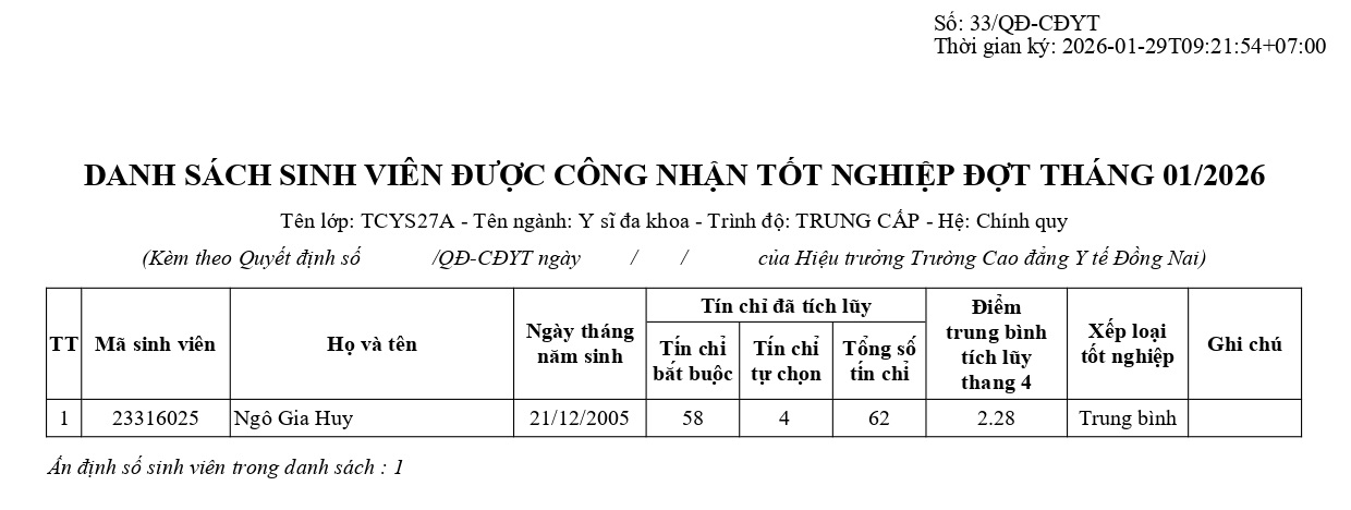 Danh sách sinh viên được công nhận tốt nghiệp: