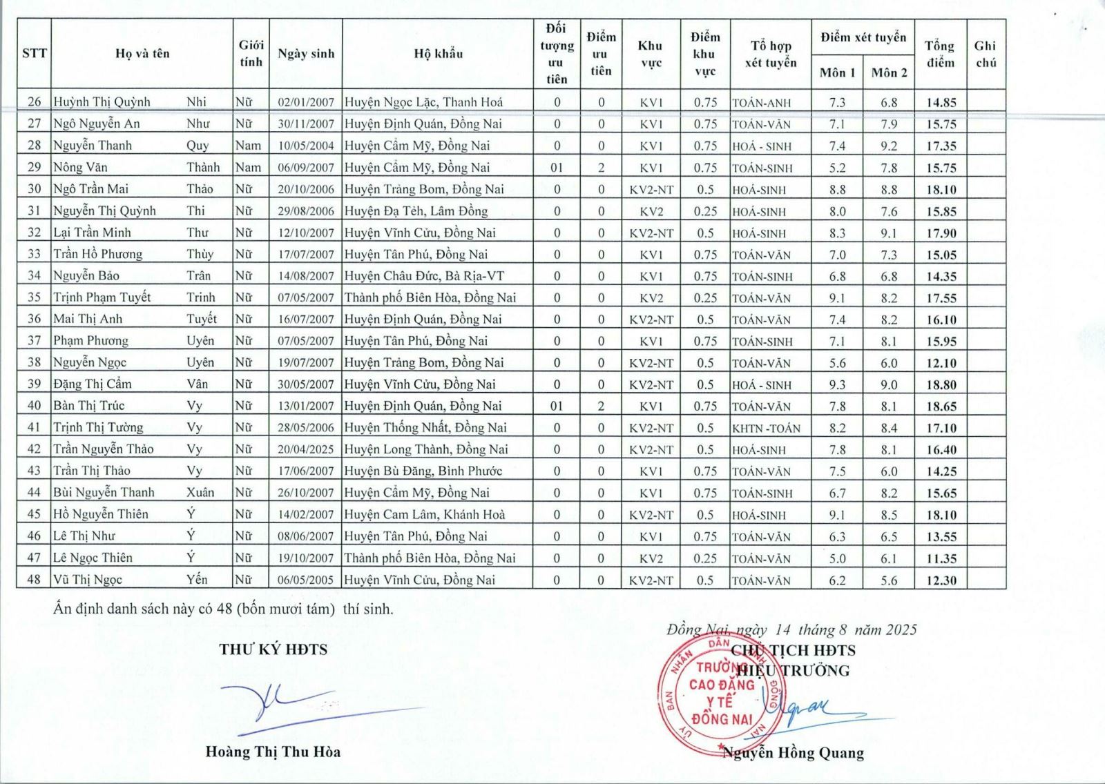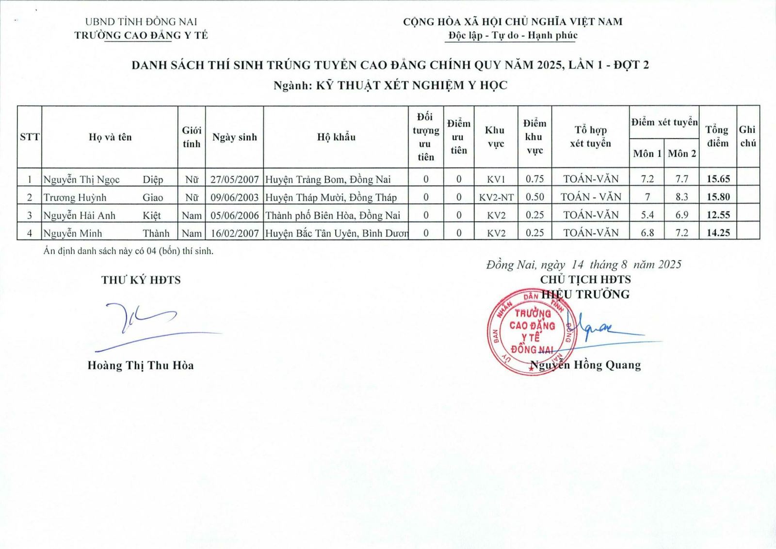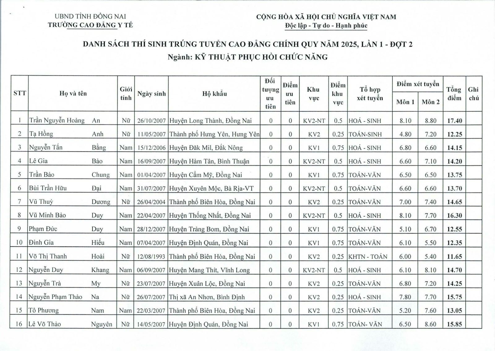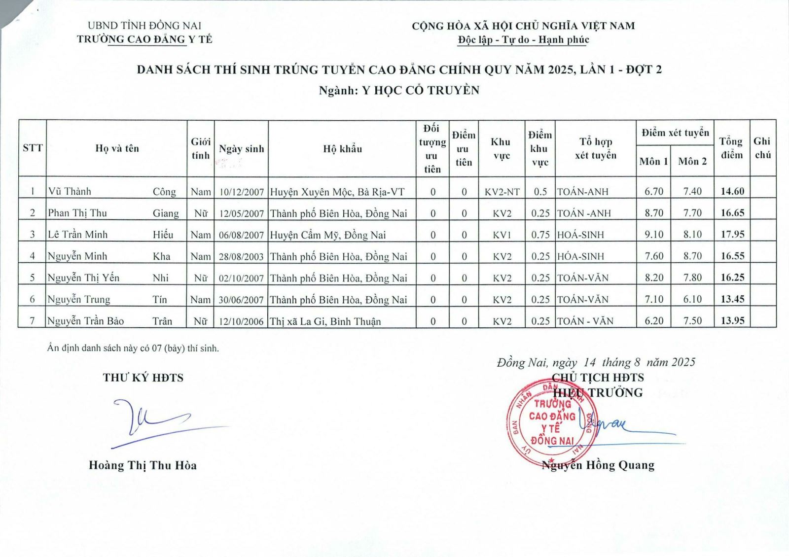 Sau đây là danh sách thí sinh trúng tuyển Cao đẳng chính quy năm 2025, lần 1 đợt 2 các ngành: