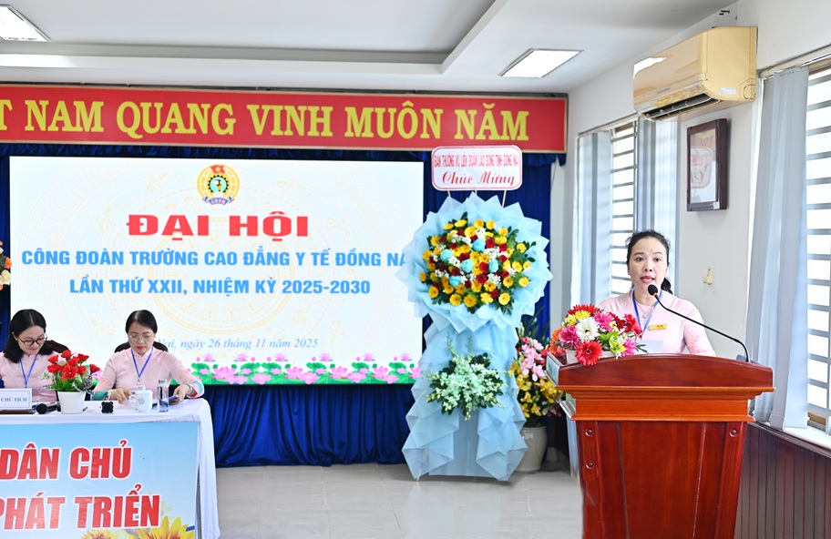 Được sự đồng ý của Đảng ủy Trường, Ban Thường vụ Liên đoàn Lao động tỉnh, Công đoàn Phường Long Bình cùng sự quan tâm, tạo điều kiện của Ban Giám hiệu nhà trường, sáng ngày 26 tháng 11 năm 2025, Công đoàn cơ sở Trường Cao đẳng Y tế Đồng Nai long trọng tổ chức “Đại hội lần thứ XXII, nhiệm kỳ 2025–2030” nhằm bầu Ban Chấp hành Công đoàn nhiệm kỳ mới.