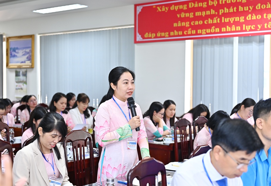 Đ/c Phạm Thị Lành - Tổ trưởng công đoàn Khoa Y - Dược - KHCB đóng góp ý kiến trong đại hội
