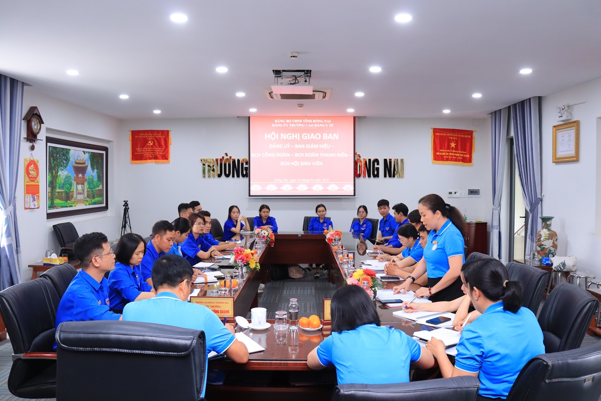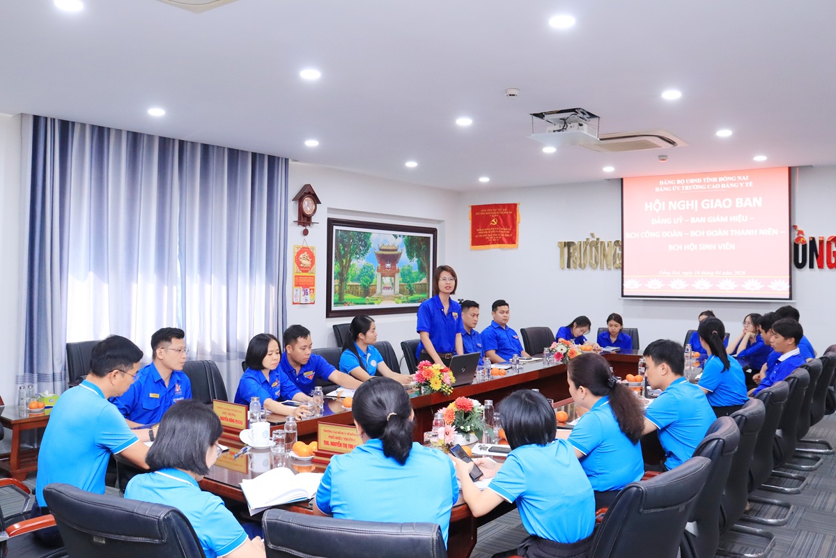Chiều ngày 16 tháng 4 năm 2026, Trường Cao đẳng Y tế Đồng Nai tổ chức “Hội nghị giao ban giữa Đảng ủy - Ban Giám hiệu - Ban Chấp hành (BCH) Công đoàn, BCH Đoàn Thanh niên và BCH Hội Sinh viên”. Hội nghị được tổ chức nhằm đánh giá các mặt hoạt động thời gian qua và thảo luận các phương hướng đột phá trong công tác xây dựng nhà trường xanh – sạch – đẹp, đồng thời đẩy mạnh phong trào đoàn hội.