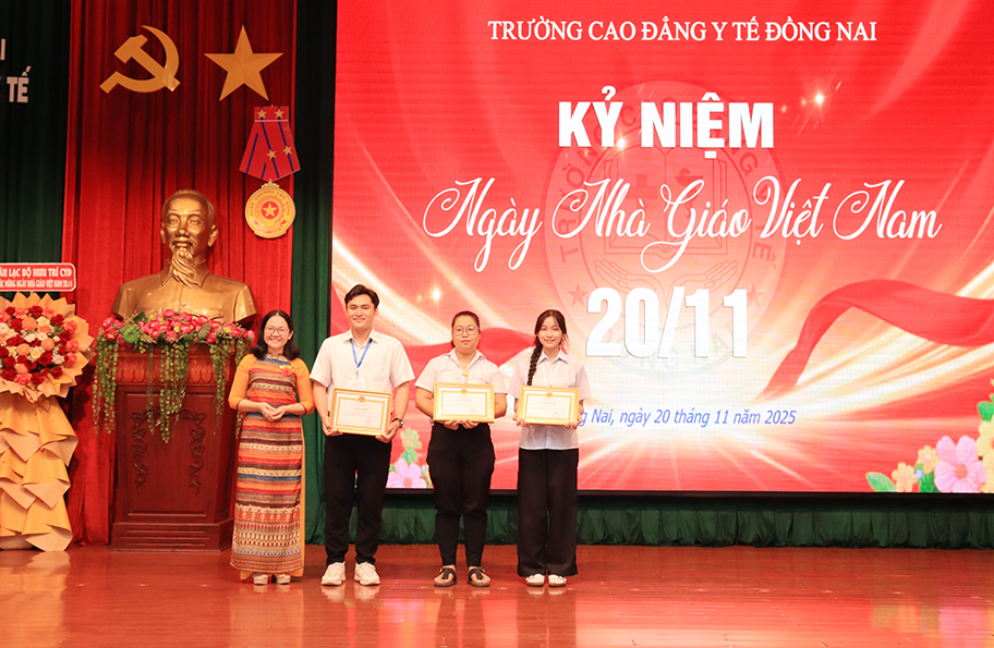 Sáng ngày 20 tháng 11 năm 2025, Trường Cao đẳng Y tế Đồng Nai long trọng tổ chức buổi “Họp mặt truyền thống kỷ niệm 43 năm ngày Nhà giáo Việt Nam 20/11/1982 - 20/11/2025”.