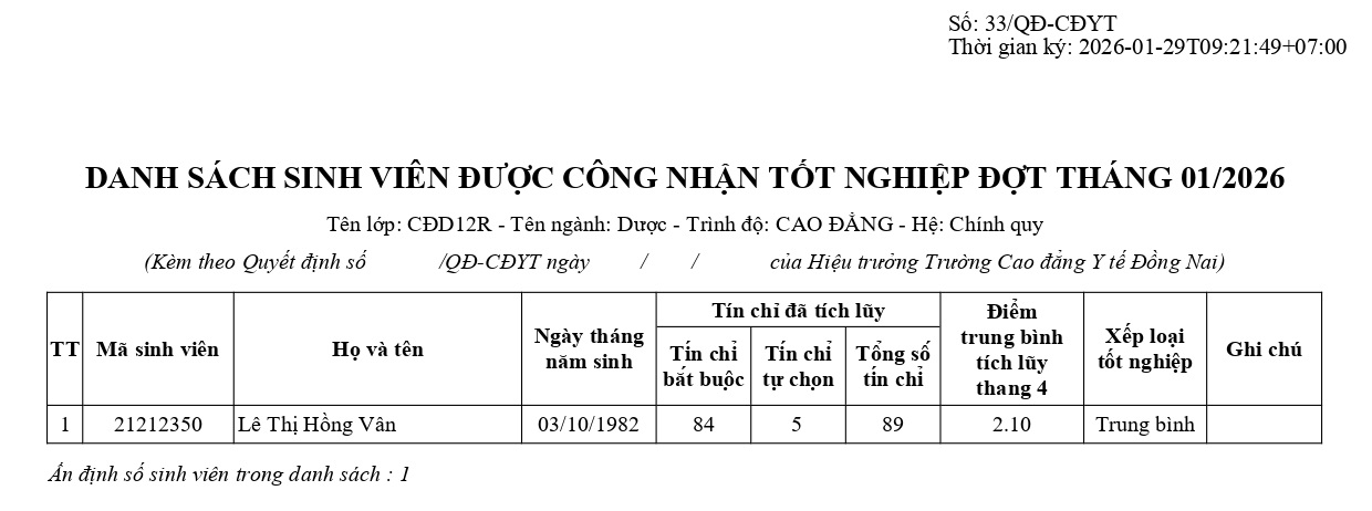 Danh sách sinh viên được công nhận tốt nghiệp: