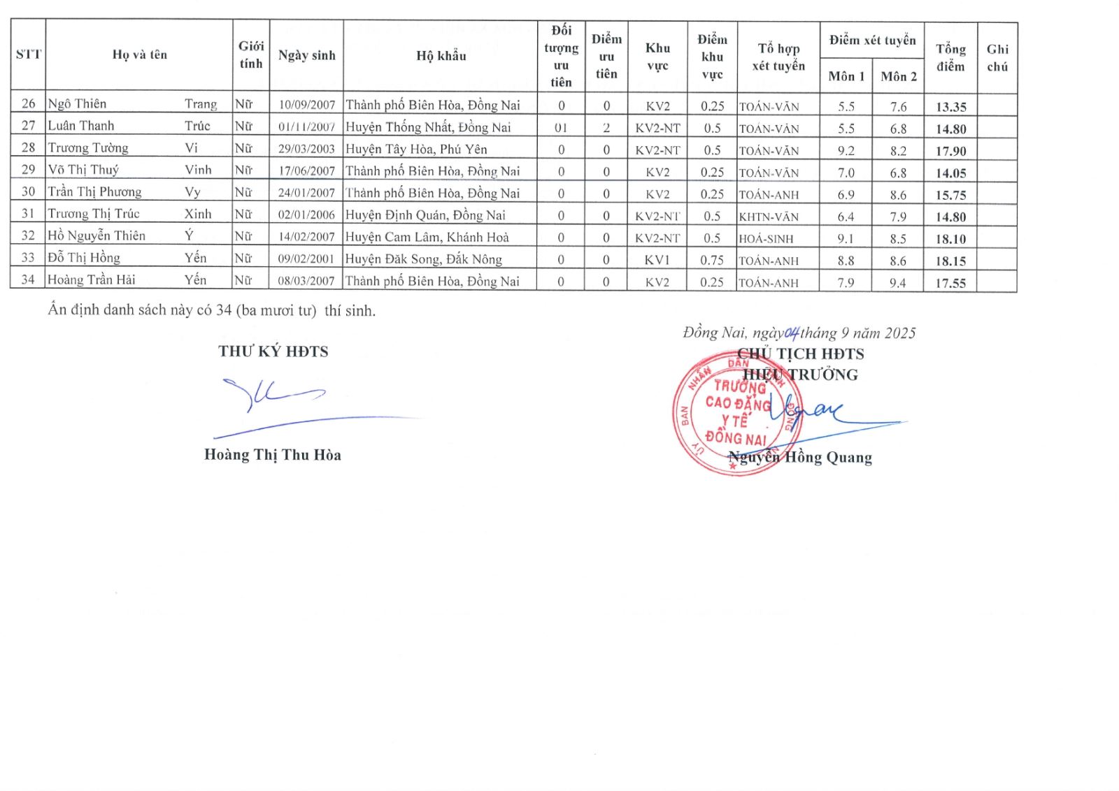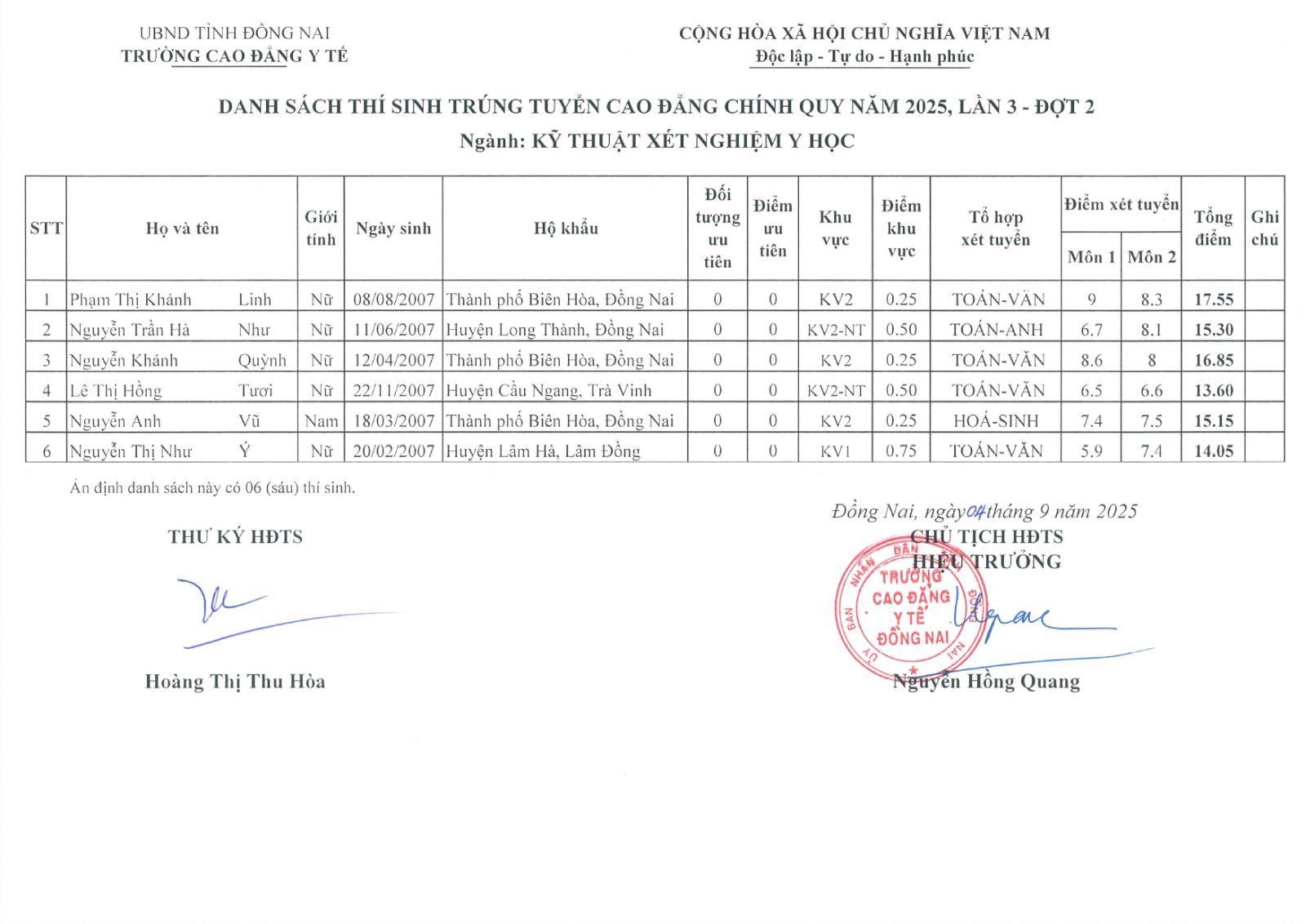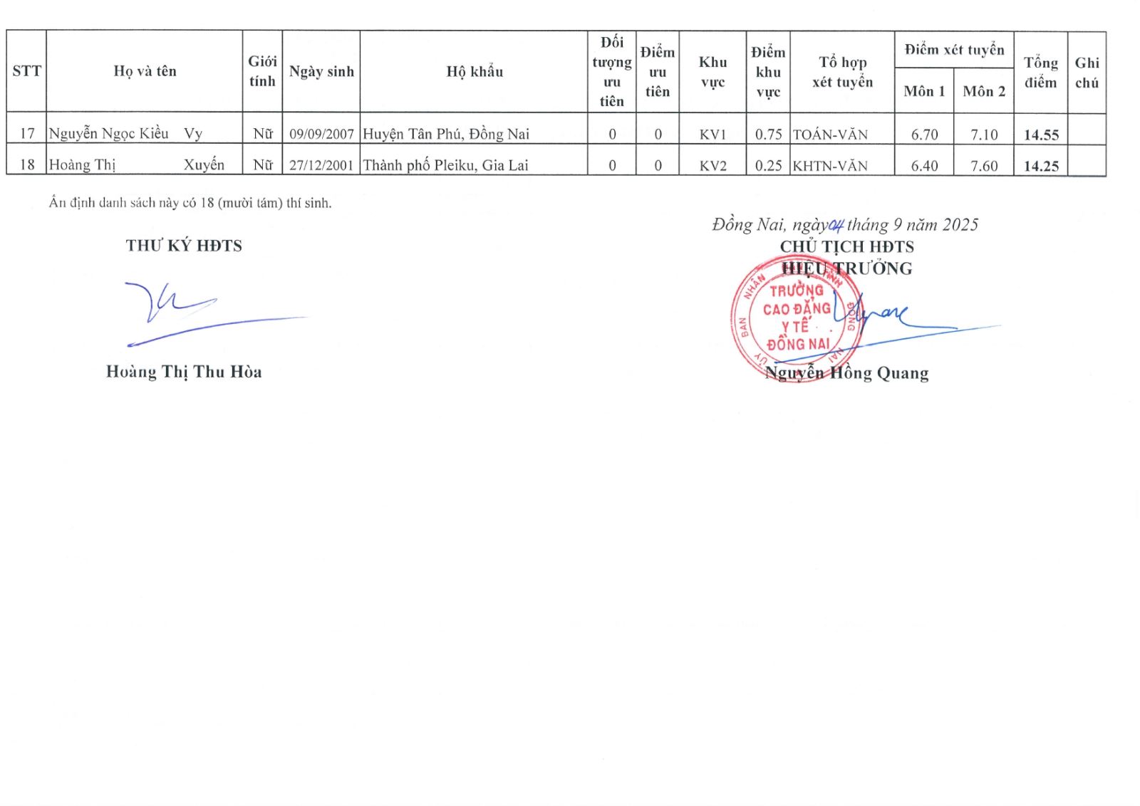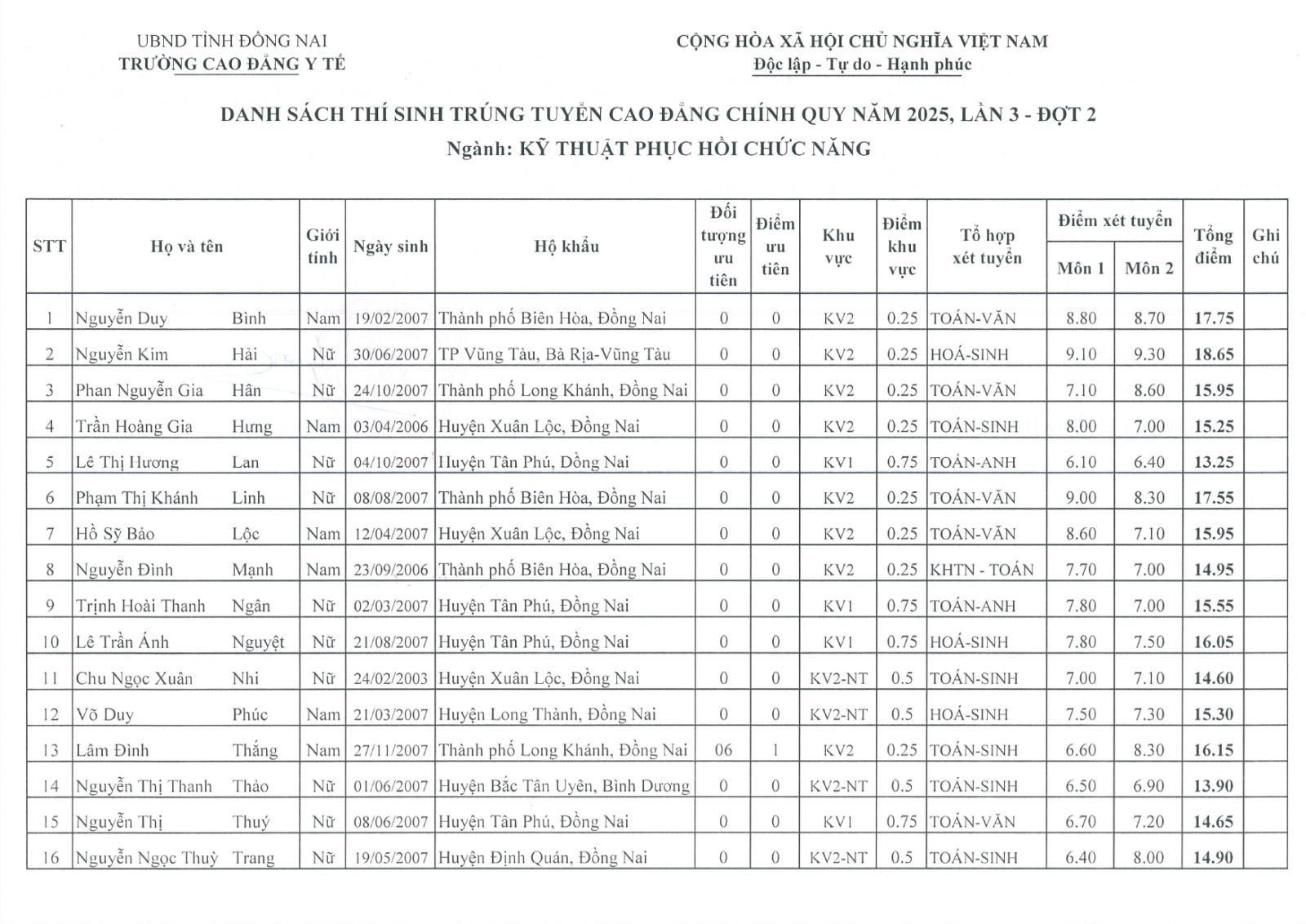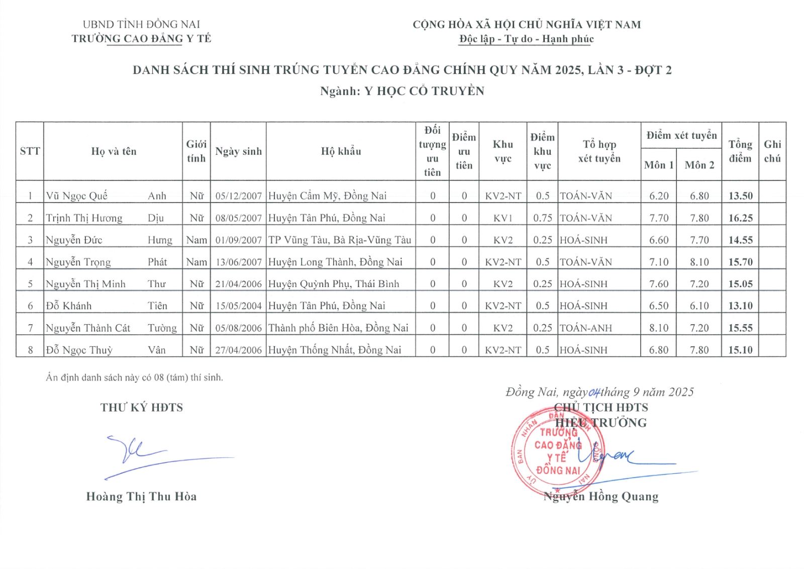 Sau đây là danh sách thí sinh trúng tuyển Cao đẳng chính quy năm 2025, lần 1 đợt 2 các ngành: