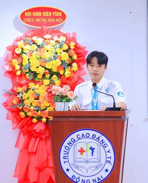 Đ/c Phạm Nhựt Anh đại diện Sinh viên, hội viên của trường, gửi đến Đại hội bài tham luận: “Giải pháp xây dựng và phát huy phong trào sinh viên 5 tốt tại trường Cao đăng Y tế Đồng Nai”