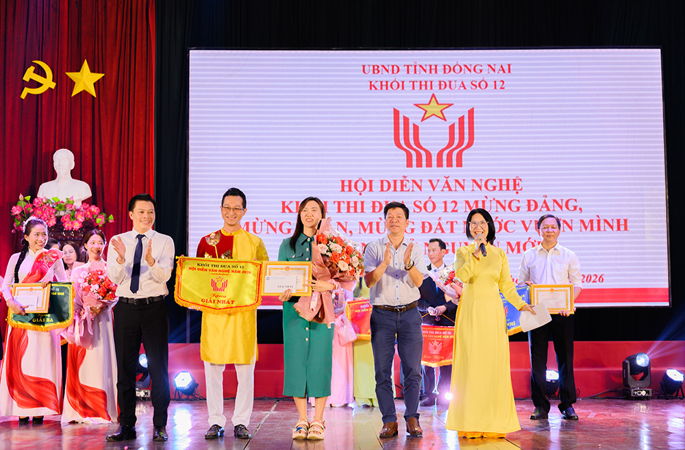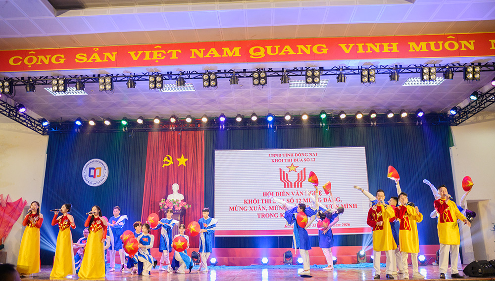 Trong không khí phấn khởi chào mừng Đảng, mừng Xuân và mừng đất nước vươn mình trong kỷ nguyên mới, Trường Cao đẳng Y tế Đồng Nai đã tham gia Hội diễn văn nghệ Khối thi đua 12 với tinh thần nhiệt huyết và tự hào trong ngày 22/01/2026. Hội diễn quy tụ 14 tiết mục đặc sắc đến từ 14 trường đại học, cao đẳng trong khối, mang đến cho khán giả những màn trình diễn hoành tráng, được đầu tư công phu, giàu giá trị nghệ thuật và đậm đà bản sắc dân tộc.
