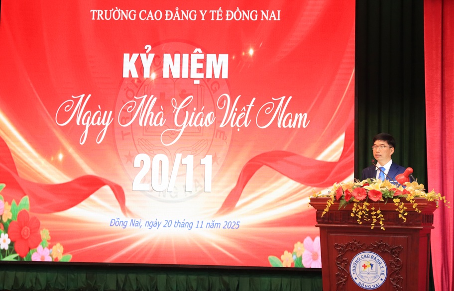 Sáng ngày 20 tháng 11 năm 2025, Trường Cao đẳng Y tế Đồng Nai long trọng tổ chức buổi “Họp mặt truyền thống kỷ niệm 43 năm ngày Nhà giáo Việt Nam 20/11/1982 - 20/11/2025”.