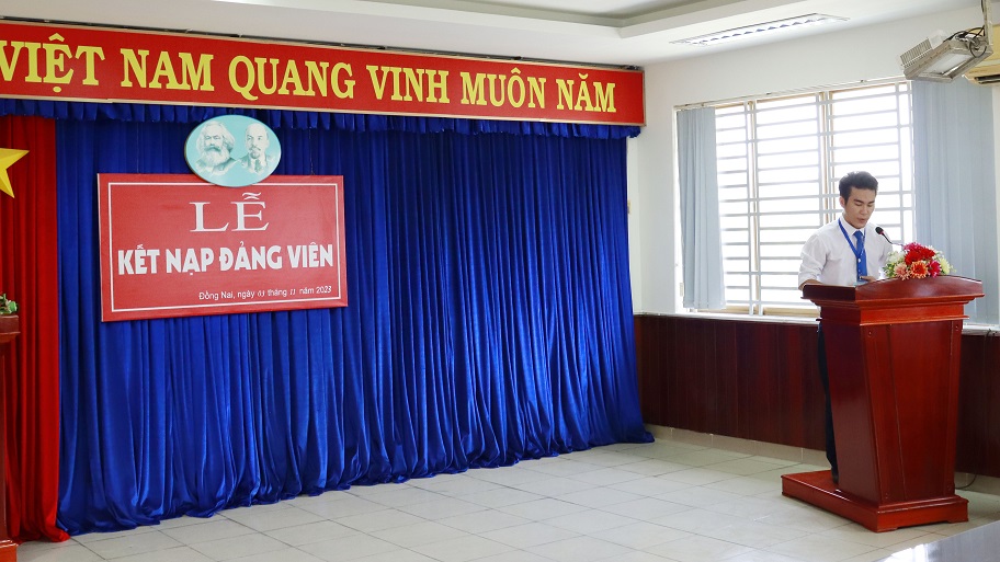 Đ/c Nguyễn Hồng Quang – Bí thư Đảng bộ thay mặt Đảng bộ trường chúc mừng hai Chi bộ kết nạp thêm 02 đồng chí đảng viên mới, nói lên nhiệm vụ của người Đảng viên mới phải luôn nỗ lực học tập, và luôn làm gương cho quần chúng noi theo.