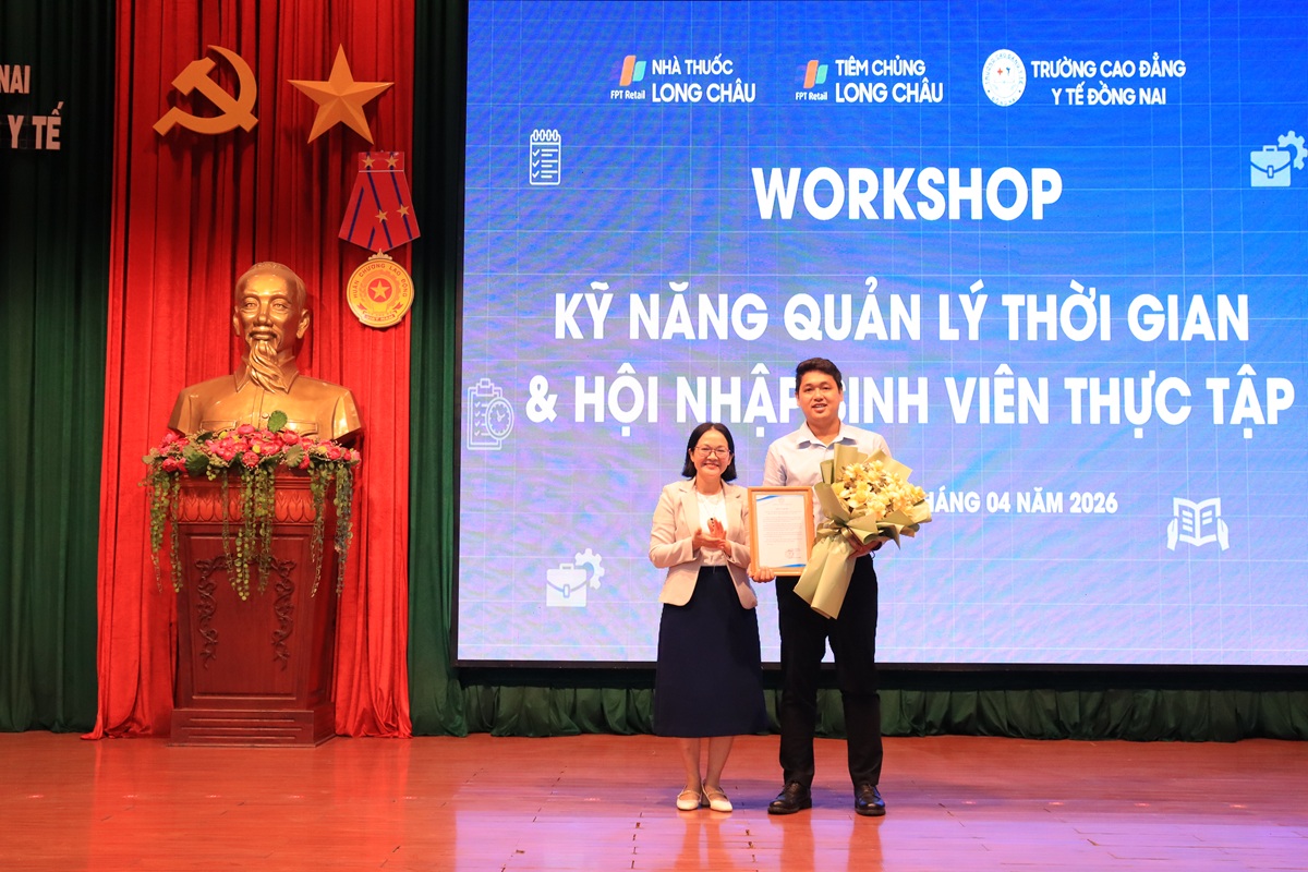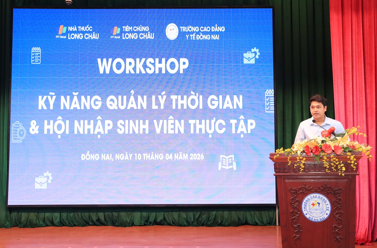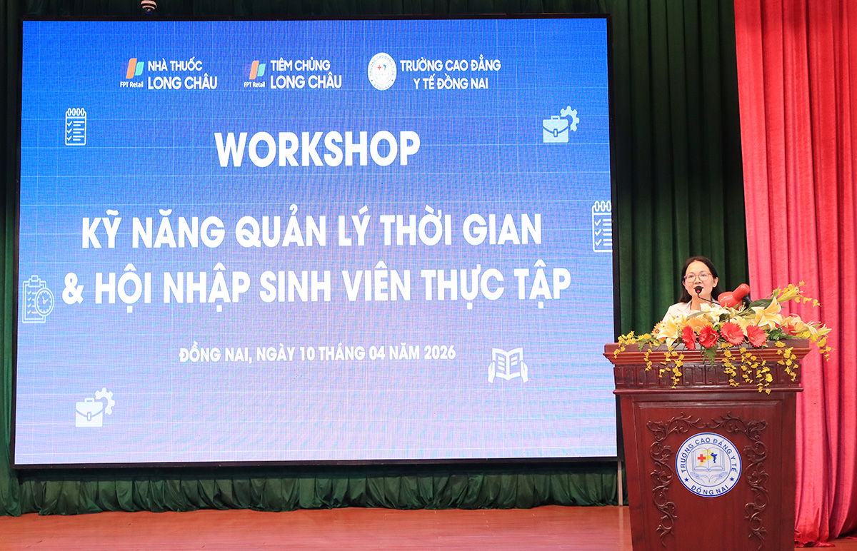 Nhằm tăng cường trang bị kỹ năng mềm và định hướng nghề nghiệp cho sinh viên trước khi bước vào môi trường làm việc thực tế, Trường Cao đẳng Y tế Đồng Nai đã phối hợp cùng Công ty Cổ phần Dược phẩm FPT Long Châu tổ chức chương trình workshop với chủ đề “Kỹ năng Quản lý thời gian và Hội nhập sinh viên thực tập” dành cho sinh viên ngành Dược năm 3.