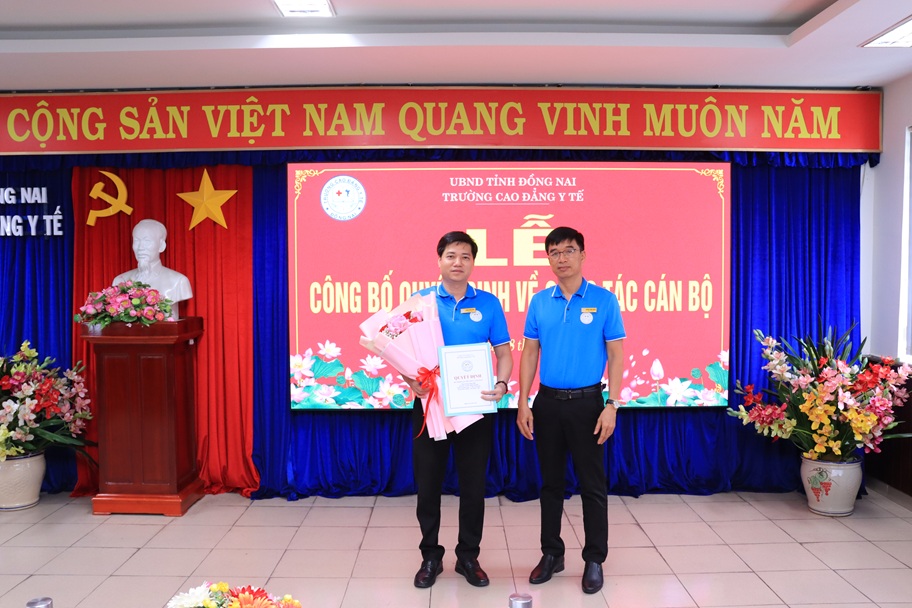 Mở đầu Hội nghị là chương trình công bố về công tác cán bộ theo Quyết định số 504/QĐ-CĐYT ngày 25/8/2025 của Trường Cao đẳng Y tế Đồng Nai về việc bổ nhiệm lại ThS. Lương Công Nhật giữ chức vụ Chủ nhiệm Bộ môn Phục hồi chức năng – Y học cổ truyền.