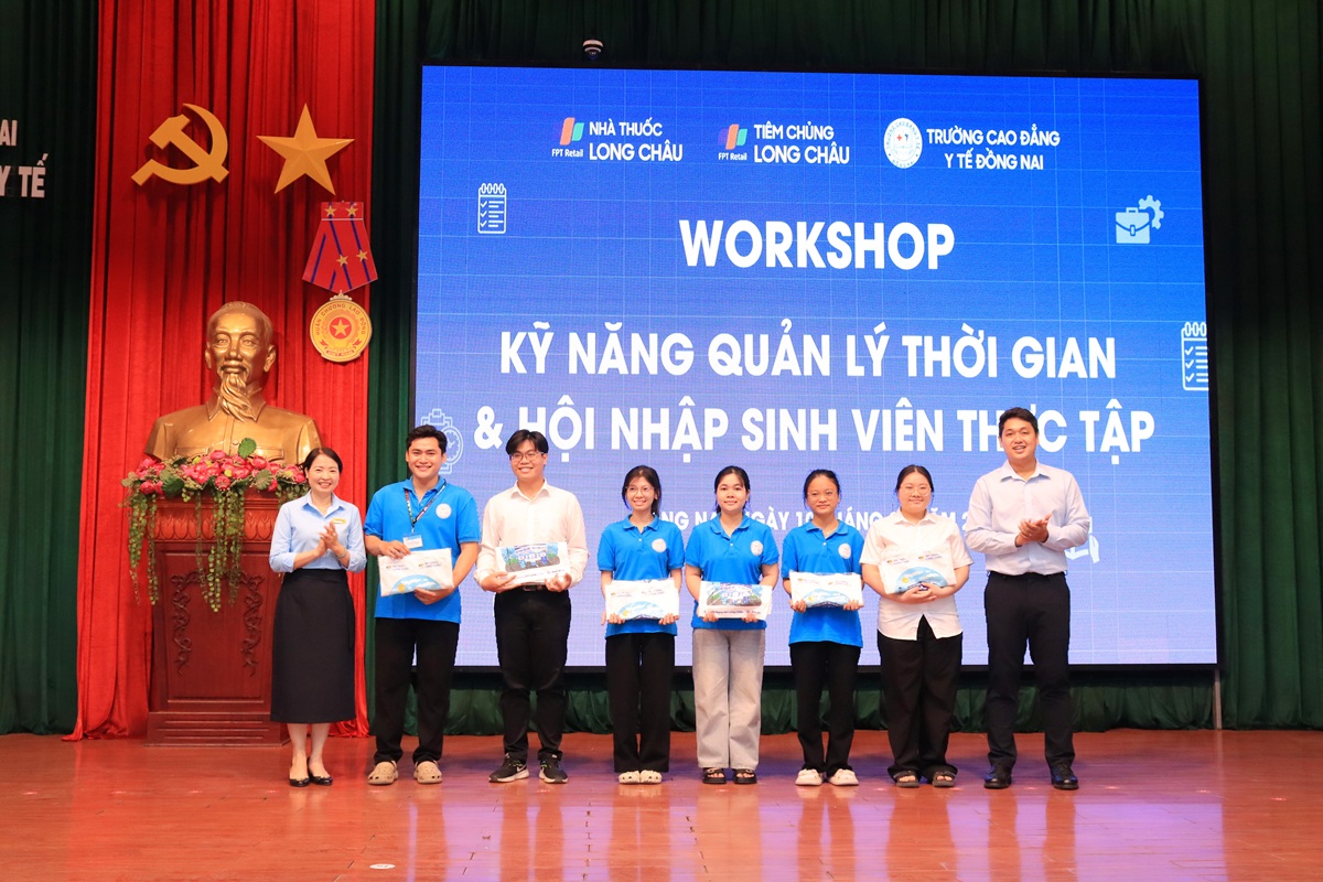 Nhằm tăng cường trang bị kỹ năng mềm và định hướng nghề nghiệp cho sinh viên trước khi bước vào môi trường làm việc thực tế, Trường Cao đẳng Y tế Đồng Nai đã phối hợp cùng Công ty Cổ phần Dược phẩm FPT Long Châu tổ chức chương trình workshop với chủ đề “Kỹ năng Quản lý thời gian và Hội nhập sinh viên thực tập” dành cho sinh viên ngành Dược năm 3.